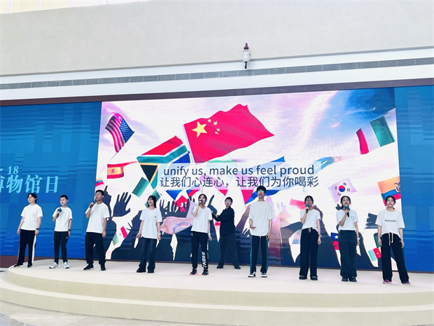 5月18日为国际博物馆日。作为浙江博物馆共建单位之一,我校学生应邀参加主题为“博物馆致力于教育与研究的庆典”的系列表演活动。当天下午,由班主任廖晓芳老师带队,初三2双语班的同学们走进之江文化中心,为在场的观众们带来了一首多语种版本的《旗开得胜》。