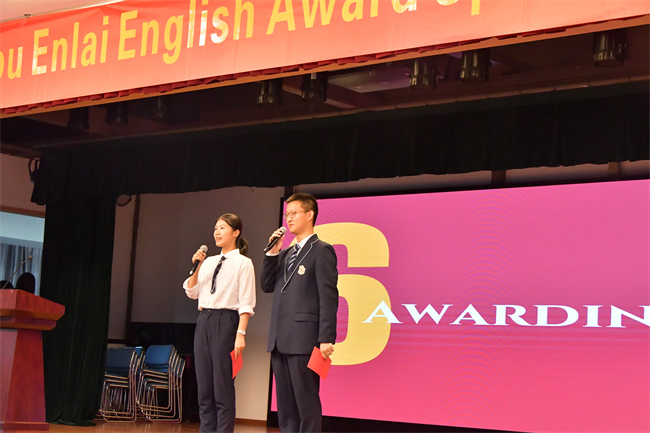 5月24日,杭外最高规格的年度英语演讲比赛——“周恩来杯”正式拉开帷幕。此次演讲比赛由高三大预班的袁嘉仪和俞楷文两位同学主持。全体高二学生和高三大预班学生在现场观看比赛。