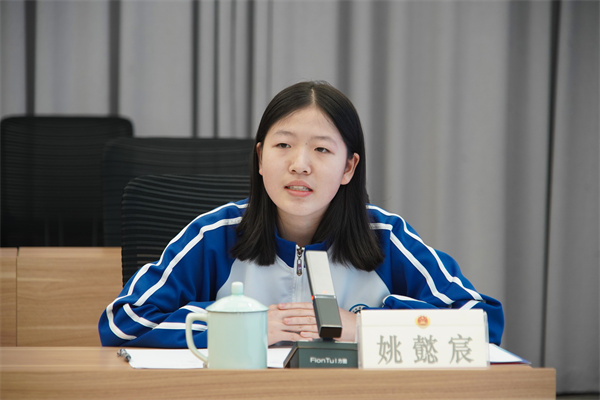 学生代表姚懿宸在发言中对省检察院、省教育厅及社会各界对未成年人的关心关爱表示感谢,深切感受到家庭保护、学校保护、网络保护、社会保护、政府保护、司法保护等“六大保护”所带来的安全感和幸福感。她表示,通过道德与法治课的学习、参加模拟政协活动、参与省“学宪法、讲宪法”比赛等,努力做到学法、知法、守法、用法,成为心中有爱、与法同行的社会主义建设者和接班人。