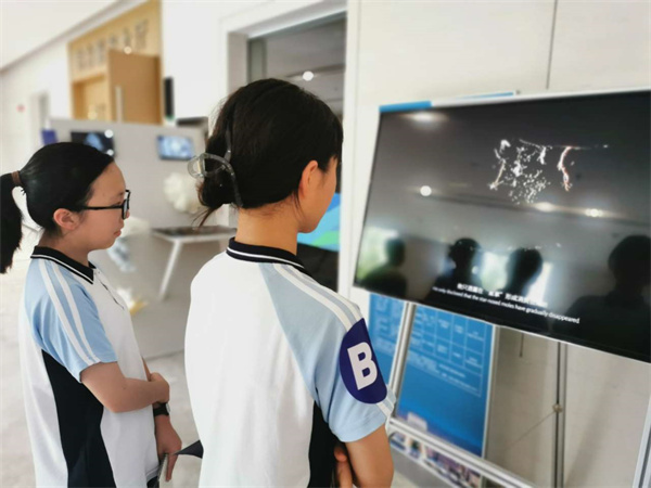 同学们首先参观了微纳加工中心,了解芯片制备流程,并欣赏了科学艺术作品展。在演讲环节,阿里云百炼首席架构师高金杨先生介绍了百炼2.0与阿里云魔搭模型社区;法国商学院教授Anone Evano女士从商学院视角探讨了人工智能的发展;电机专家Francis Kremer详细介绍了自动化车间生产电机的流程,并对人工智能在该领域的应用予以展望;阿里巴巴达摩医疗AI团队分享了通过AI识别平扫胸部CT诊断胰腺癌的案例;另外还有创作设计绘本、电影及游戏等方案。会后,同学们在“科学之美”展览区体验了互动项目,沉浸式感受智能计算赋能科研和生活的无限可能。