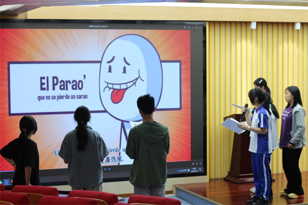 这是第一次以班级为单位举行多语种配音活动。在活动中我们感受到了不同语言之间的文化差异和交融,拓宽了我们的视野。在准备西语配音活动的过程中,我们从找片段、分角色再到消音,同学们都积极配合,做出贡献。如果没有集体责任感,想必这次配音也不会达到如此好的效果。在最终的展示中,大家也展示出自己最好的状态,突破自己呈现了一场精彩的配音秀。最后感谢老师在我们配音活动中提供的帮助和指导,也感谢所有认真排练的同学们!