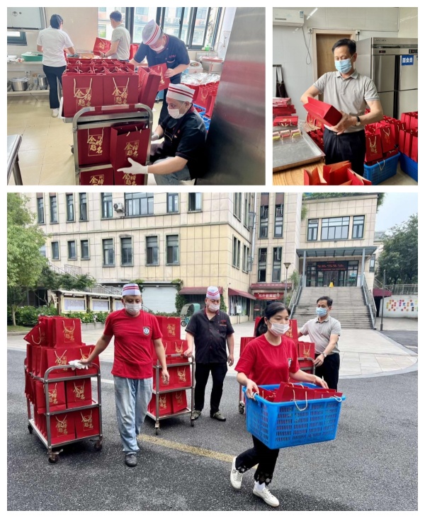 杭外后勤公司,一直关心师生校园生活点滴,历来对高三学生“特殊照顾”,每年在食堂专门开设高三专窗,研发精美菜品专供高三学生品尝;在高考即将来临前,后勤餐饮部组织精干力量,早上现做特制“定胜糕”,手包馅料饱满的“高中”粽,两样美食寓意一举高(糕)中(粽)。餐饮部加班加点地完成“金榜题名”礼包,将这一份饱含后勤人祝福的礼物,送到每位高考考生手中,为考生加油打气。