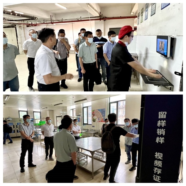 副校长陈亮陪同岱山教育局领导们参观了学校“中央厨房”、“阳光厨房”工程,“互联网+明厨亮灶4.0”建设情况,对食堂新引进的智能验货机、智慧晨检仪等设备进行了详细了解。参观后,岱山教育局领导一行对我校近年的发展、学校食堂提升等方面取得的成绩给予充分肯定与好评。