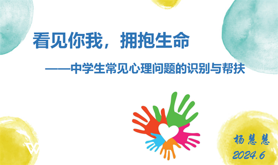 另外,6月5日下午,杨慧慧老师在外文支部主题党日活动中作了主题为《拥抱生命,看见你我》的心理健康维护讲座。杨老师介绍了青少年心理发展的特点,以及如何识别和处理学生常见的心理问题。最后杨老师还提示现场的老师们,在关心学生的同时也要关注自己的情绪,多做一些让自己感到幸福的事情。