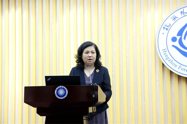北京大学外国语学院党委书记李淑静在致辞中感谢浙江省教育厅及杭外对本次活动的大力支持。她简要介绍了北大外院的发展历史、院系设置、学科建设等情况,希望通过暑期课堂的一系列专业讲座和学术研讨,能够让学生们在北大最优秀的外语教授、青年翻译家的引导下,领略经典文本的深邃魅力,同历史上人类思想的先行者们展开跨越时空的对话,更加具体、直观地感受北京大学外国语学院的育人理念和治学精神,并祝愿参加暑期课堂的同学们在语言、文学的滋养和浸润之中,丰富思想,充盈内心。
