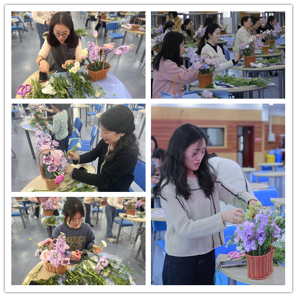 3月21日下午,50余位女教职工齐聚校园参加“艺术插花”活动。在专业老师指导下,大家巧手修剪枝叶,精心搭配色彩,现场花香四溢,笑语盈盈。一件件独具匠心的插花作品,展现了女教职工们对美的追求和对生活的热爱。