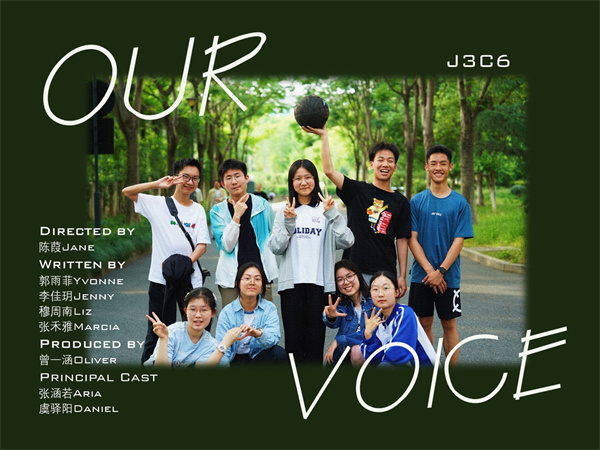 这次外文节的微电影活动可以说非常非常的难忘,第一次当导演,第一次组织一大帮人一起干一件很有意义很有成就感的事,很开心也很感动。两周极限拍摄+剪辑,每天都很忙碌,借教室,腾自习课,招呼全班做群演,我想这就是群像的魅力。大家很团结,都特别配合也很有想法,印象特别深的是期中考前通知下来的时候,所有人都特别积极,非常感谢我们的编剧在考前就把剧情大致全定好了,超级佩服大家!从一开始的宏伟计划与幻想,到各种各样的问题与漏洞,从严重超时到刚好卡到八分钟。非常幸运遇到我们团队中的每一个人,幸运能将our voice汇入八分钟一秒不差的微电影中。每一帧的影像,每一秒的独白,必将成为属于我们的永恒青春。OUR VOICE,是我们的声音,是各种各样声音的融合自洽与独立存在,请相信,always,向内,向外都是语言。