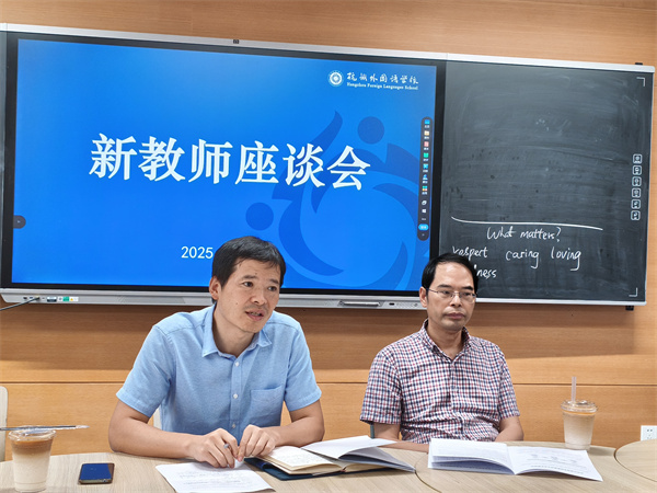 张校长作总结讲话。他强调师徒结对要实现“真指导、真学习”,教学部门要“真支持”,要通过正式制度与柔性关怀相结合的方式,助力新教师全面融入杭外大家庭。期待师徒能携手并进、教学相长,为杭外教育高质量发展注入源源不断的活力。