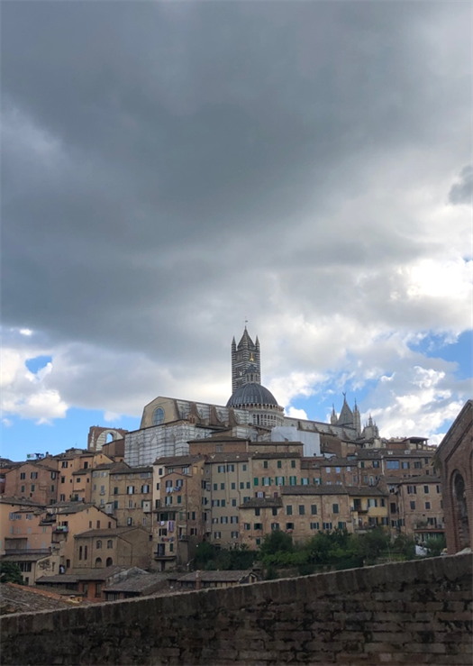 锡耶纳位处高地,远离主城区,一个多小时的车程,窗外风景如画,那些从未在中国见过的树,那一座座历史悠久的教堂,都让同学们倍感震撼。当那座屹立于山顶之上的复古小镇完整地出现在视野尽头时,忍不住惊叹,仿佛格林童话中的梦境照进了现实。