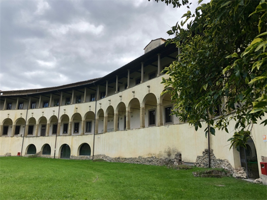 上午,同学们参观了位于阿雷佐大广场西侧的莱奇兄弟会宫。它的立面像一幅被时光晕染的画,顶端的天文钟指针轻转,仿佛在细数这座建筑跨越六个世纪的风雨故事。推门而入,最先触动大家的不是华丽的装饰,而是建筑背后的温度。1262年,莱奇兄弟会因“救助穷人与病人”而生,这座宫殿不仅仅是冰冷的砖石堆砌,更是承载着善意的容器。