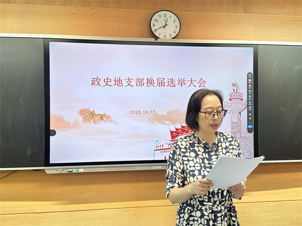 大会在激昂的《国际歌》声中圆满落幕。此次换届选举工作组织严密、程序规范、风清气正,不仅是一次严肃的党内政治生活,更是一次凝聚共识、鼓舞干劲的动员会,为政史地党支部注入了新的活力,开启了党建工作的新征程。