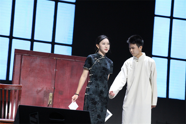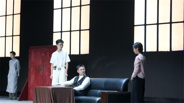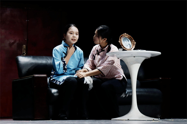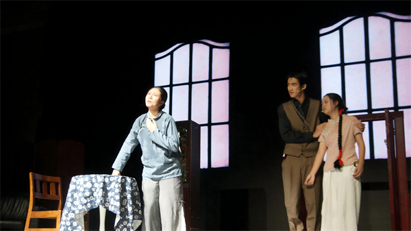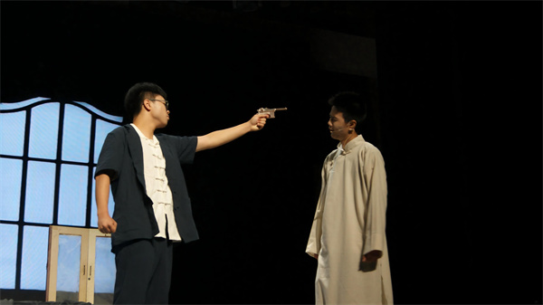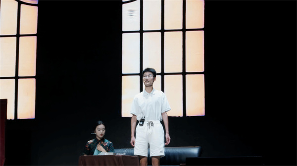 演出当晚,舞台上的每一幕都精彩。周冲登场时,扮演的同学语气清亮,眼神透着少年的热忱,带动了台下所有观众的情绪;鲁大海与周朴园对峙时,攥紧拳头的力度让台词更具张力,台下的同学们都不自觉屏住呼吸。雷雨夜场景中,后台同学用冷光灯交替闪烁营造闪电效果,蘩漪站在舞台中央说出 “我没有丈夫,我没有孩子” 时,语调里的绝望让现场瞬间安静,唯有背景音里的雨声与雷声清晰可闻。演员们的动作、台词都围绕原著展开,没有多余的改编,却用专注的演绎让经典场景鲜活起来。