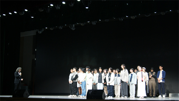 最后一幕的台词结束后,舞台短暂静默,灯光下,演员们仍保持着角色的姿态——四凤的扮演者向远处伸出手;周朴园的扮演者扶着道具桌;周萍的扮演者则将一只拿着手枪的手抵住自己的头。没人立刻起身。台下的掌声从零星渐至热烈,不少同学坐在舞台正下方拿出相机记录着此刻。