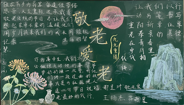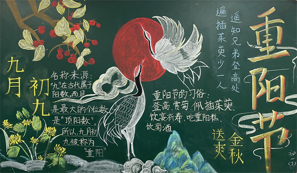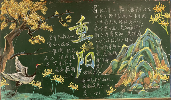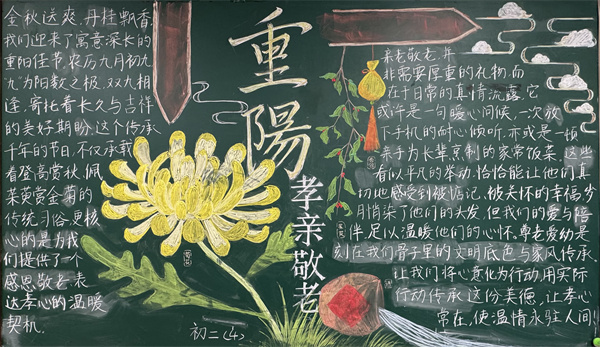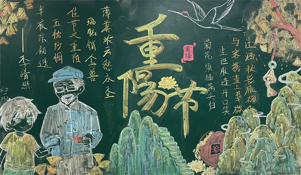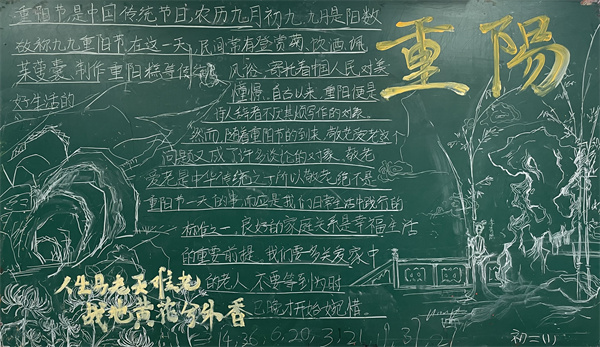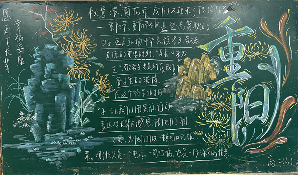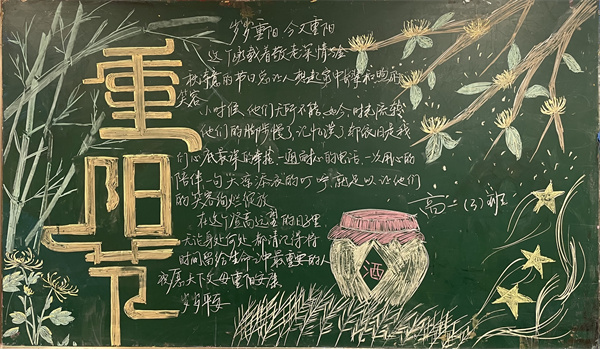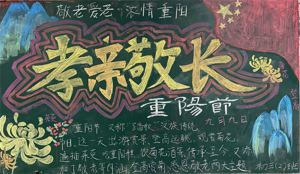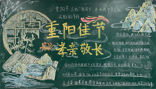 10月底,我校举行“岁月悠悠 重阳情深”主题黑板报评比活动,各班认真布置,精心准备,让重阳不只是一个标记时序的节日,更能展示出沉淀千年时光的厚重,流淌细腻的人文底蕴。