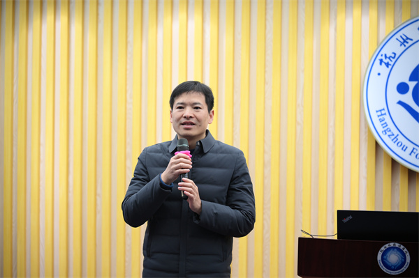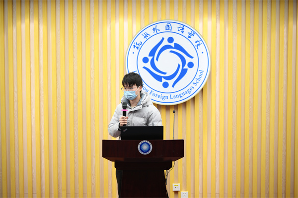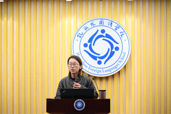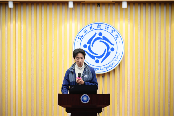 本次活动在2号楼报告厅进行,活动由教科室副主任林存富主持,林老师介绍了本次研学的核心主旨与流程安排。随后,副校长张传鹏致欢迎辞。张校长代表学校对天台县外国语学校师生的到来表示欢迎,希望通过此次研学,两校师生可以在交流中互学互鉴、共同成长,也期待未来两校能开展更加多元化的合作交流。