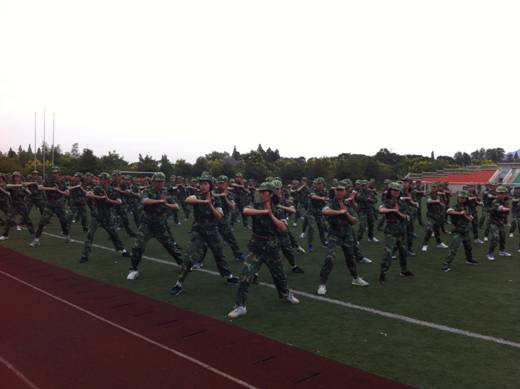 今朝,我们淌着汗水接受军人的洗礼。我们渐渐走向默契,走向一个整体。今后,这将会化为我们成长的帆助我们乘风破浪。我们相信,我们会学会铁一样的军人精神。(包蓉)