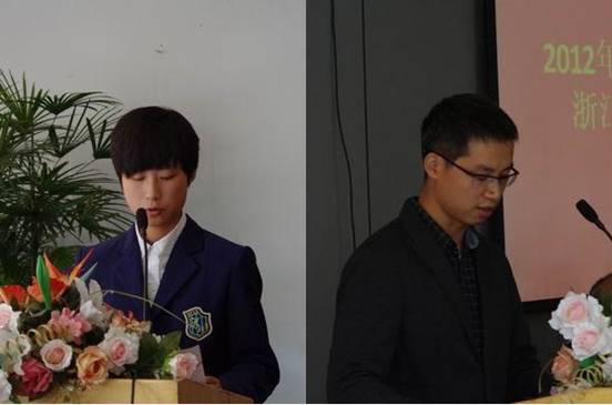 会上,围绕学生的创新发展,杨卫军教授介绍了浙江大学的相关招生机制。杨院长介绍了今年竺可桢学院启真班项目的实施情况,并对浙大求是科学班的教育培养机制作了说明。丁平教授代表省生物竞赛委员会宣读获奖名单。本届大赛共评出一等奖29人,二等奖100人,三等奖200人。大会还颁发了指导教师奖和团体优胜奖杯,我校丁亮老师、林云同学分别代表获奖师生发言。