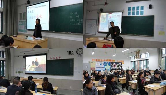 之后,是各班分开进行的家长会。首先是学生对于自己半个学期来一些活动与表现的汇报,有班级情况的介绍以及学校活动的照片展示等,初一年级还有班级精心准备的英语影片配音的展示。初二(4)班的同学们还别出新裁地录制了视频,视频中记录下了同学们想对父母说的话。学生展示过后,是各班班主任和