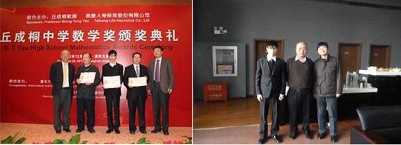 12月20日下午,以国际著名数学家丘成桐名字命名的第五届“丘成桐中学数学奖”在清华大学主楼报告厅举行隆重的颁奖典礼。我校蔡煜晟同学的论文《一类离散最值问题的探究》获得了丘成桐中数学奖总决赛的铜奖,同时我校也是全国仅有的三所荣获最佳组织奖的学校之一。