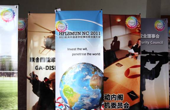 2011年10月1日至4日,我校成功举办了首届杭州外国语学校模拟联合国大会全国会议。本次会议吸引了校内外近300名学生前来参加,包括深圳中学、武汉外国语学校、复旦大学附属中学、南京大学附属中学、厦门第一中学、杭州第二中学等十余所省内外知名高中的学生代表。