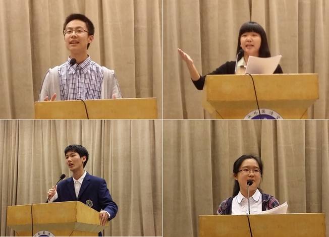 5月10日晚,我校高一、高二年级的学生在5116教室举行了以“青春中国”为主题的演讲比赛。学校语文组杨文玫老师、章晓红老师、周华伟老师担任了本次演讲比赛的评委。活动沿袭了去年的传统高一、高二年级各班派出一名代表,结合“五四”青年节,在演讲台上讲出自己的观点,分享自己的理解。