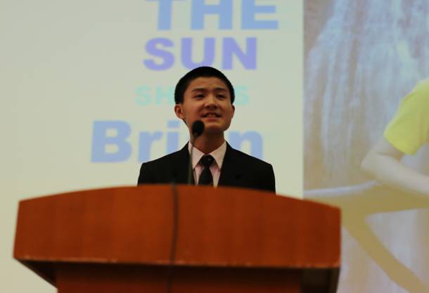 在这样的日子里,我们走上台,对着世界大声地说着我们的梦想。八个人,曹苏媛、陈雨琳、施嘉禾、田雪嫣、金骁枫、于赟皓、杨竞一、张意彬,四男四女,风格迥异,百花齐放。最后,Casio杯演讲比赛的冠军由初三(3)班的曹苏媛和初三(5)班的金骁枫获得!