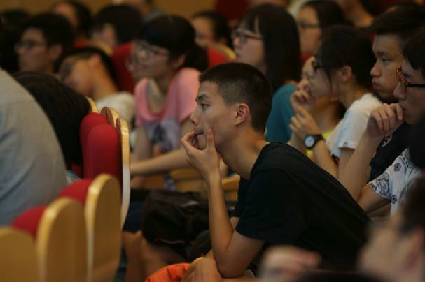 讲座如期举行,同学们井然有序集中在3117阶梯教室,并在方健文校长的介绍下,用热烈的掌声欢迎来自北大招生办公室的