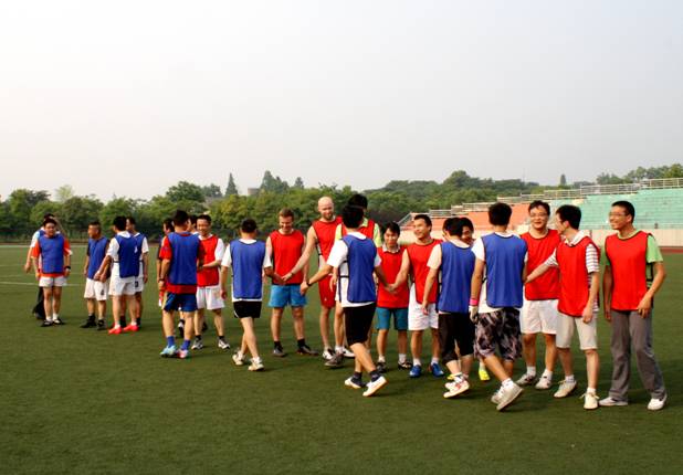 世界杯足球赛开战在即,为营造良好的体育运动氛围,促进教职工之间的深入交流,在校工会的倡议下,我校于6月9日下午4点举办了一场教职工足球友谊赛,对阵双方分别为在杭外本部(含剑桥高中)和英特校区任教的老师。经过上下半场各30分钟的角逐,双方以2:2的比分握手言和。