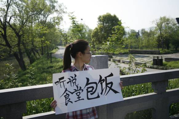 在分配完台词后,开始了无限循环的排练。最先是自己排练,然后找到周华伟老师一同练习,最后再配上音乐。我们决定充分利用图书馆的平台,在二楼和五楼上完成快闪。在老师们的全力帮助下,我们成功拿到了平台的钥匙。音响效果在快闪中也很重要,于是在表演前几天,郑叶青老师专门为我们试了音,确保没有问题。
