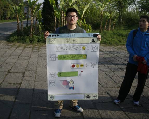 准备工作是紧张又充实的,每个加油站的志愿者们都设计出了一套极具趣味性的活动方案。比如,第一组以抽签为线索串联了整个活动,获奖同学都收到一个精美的徽章,还安排了志愿者扮演可爱的小怪兽给同学们打气。第二组同学准备了加油贴纸,还派出了帅哥学长与同学们击掌鼓劲。第三组模仿了微信语音的功能,用歌声与同学们互动。最后一组设置了春游纪念卡的派发和抽奖活动,并制作了精美的杭外纪念卡送给幸运儿们。一张张留下大家特殊印记的签上铭刻的是我们辛勤的汗水;一个个大拇指和笑脸贴纸上留下的是我们诚挚的祝福;一块块加油木牌上写下的是我们尽心的付出;一张张精美绝伦的纪念卡上凝聚的是我们对杭外深深的爱。