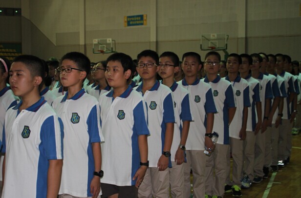 8月25日,开营仪式在我们进入杭外的第一天傍晚举行。天还没有完全黑,大礼堂里远远传来气势磅礴的军歌声,令人热血沸腾。