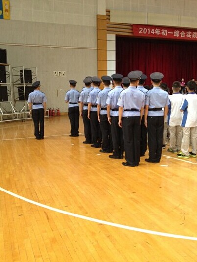 开营式上,来自浙江警察学院的大哥哥们担任我们的教官。只见他们英姿飒爽,列队整齐,口号响亮。仪式结束后,我感觉膝盖又酸又痛,齐步走的时候膝盖简直都动不了了,再看身边的高一学长们,站得整整齐齐,这就是差距。