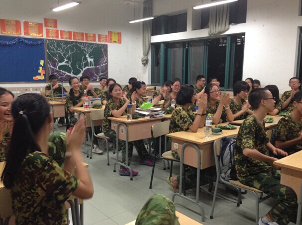 杭外校园的夜晚,在今天少了几分妩媚,多的是坚毅和刚强。见面会之后,我们按照新的队形排好,散漫的气氛顿时消失了。平日里再顽皮的同学,现在的脸上也露出了严肃的神色。我们是高一年级中最早下来的班级,在等待其他班的过程中,教官让我们原地站好,不能随意乱动。这对我们来说可是一个不小的挑战,尽管凉风习习,可是我们的额头上还是不停地流下了汗水。苦涩的汗水很不听话地流进眼睛,刺得生疼,但没有一个人动摇。在路灯幽暗的灯光下,前排同学背影的轮廓,是那么的挺拔。大部队到了寝室楼下的时候,因为个别同学的走神,我们年级被留下来罚站。这时腿更酸了,但充盈在我们心底的,不是抱怨和不满,而是作为高一的学长学姐深深的愧疚之情。于是我们在心底暗下决心——明天艰苦的训练中,我们一定要更上一层楼,展现出属于高一学生非凡独特的风采!