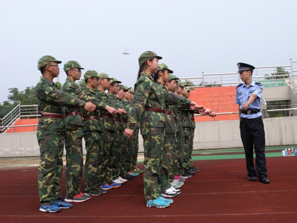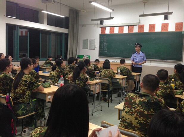 陌生的人群中,一双陶醉的眼眸深处,染尽了那张大义凛然的面孔上边一颗饱经风雨的闪光的徽章。莫名的崇拜和殊荣感悄悄爬上略显矜持的额角——他们就是来自警察学院的教官们。在于他们进行了短暂的接触后,双方也有了基本的认识。相信在接下去的一周中,我怕,我们和教官能有更加默契地配合。