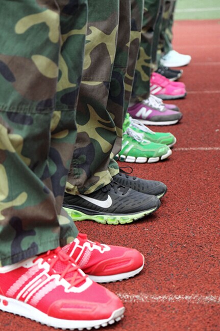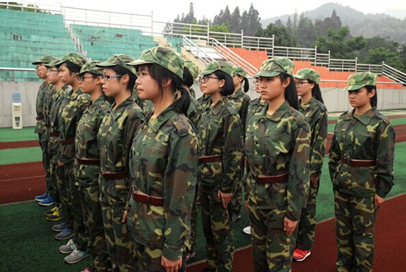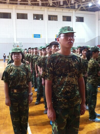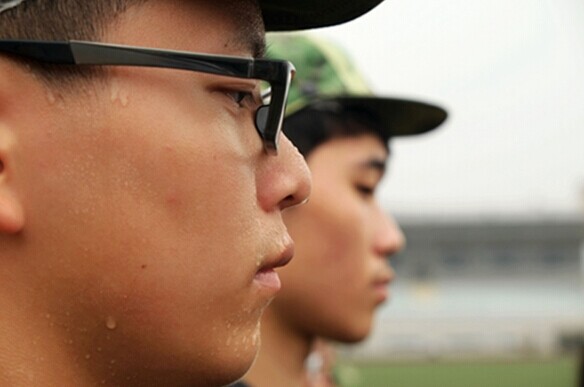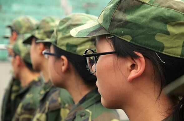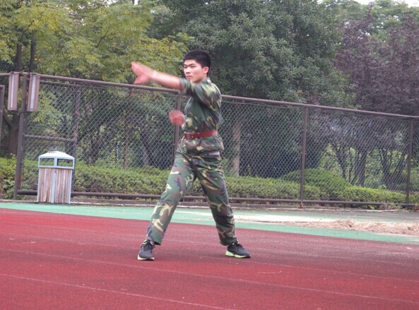 脚渐酸,腿渐麻,长久的站立使得脚后跟也如着火了一般,硬生生的疼。上午长达四个小时的训练也让腿逐渐承受不住身体的负荷:开始发酸,发麻。下午的训练就在这样的条件下开始。齐步行走的手势和步法,练手势时向后摆的手的高度成为了一个难点,重复着,持续不断地练习,直到向后举的手支撑不住。做得好受到教官的表扬时会开心,而也会因为犯错几乎全班同学受罚。不过尽管如此,也要用意志力,来定住它,因为服从是军人的天职,而他们,虽然不是真正的军人,但也正一步步地,向着这个目标努力靠拢。