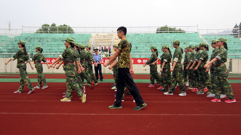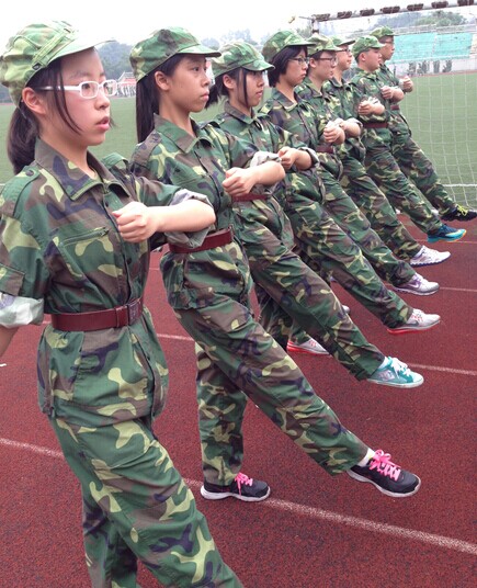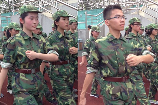 当头而来的是为期5天的校园军旅生活,我们领取了迷彩服装,闪亮的腰带还有象征庄严的军帽,全身上下散发着一种小军人的气质。一个个整齐划一的方阵,一排排笔挺径直的摆腿,一声声嘹亮的口号;学员,教官,老师,汇成了一副夏日校园生气勃勃的画面。
