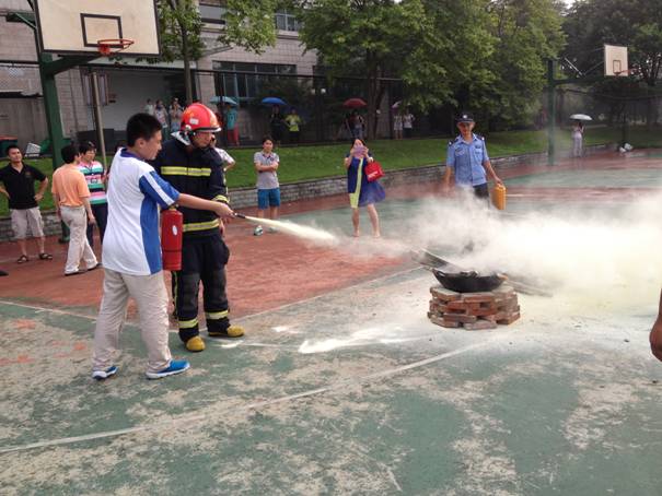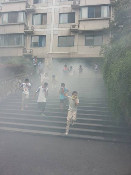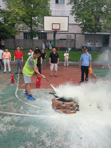 下午,还进行了消防演习,浓浓的烟雾让我们有了一份紧张心理。我们急忙跑到了一块篮球场上,看了怎么使用灭火器。有许多同学去尝试了使用,活跃的气氛让这份紧张的心放松下来。