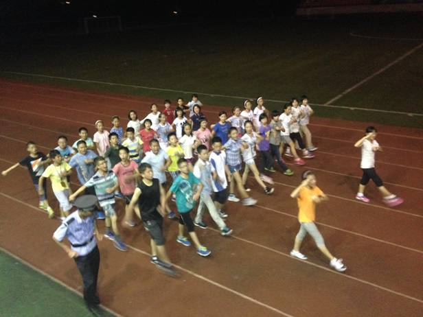 今天的学习任务很特别,需要我们把前两天的知识结合起来。看似容易,实际上特别的难,不仅要考虑排面,还得把姿势做标准,不但要保持前后的距离,还得控制好速度,可把我们给忙的手忙脚乱!