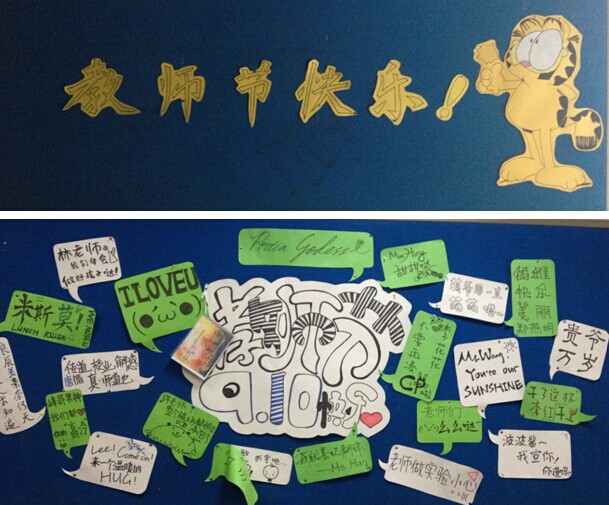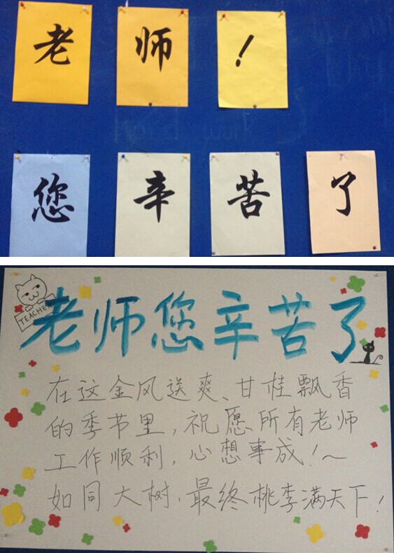 展板处处师生情——记高中部教师节展板布置