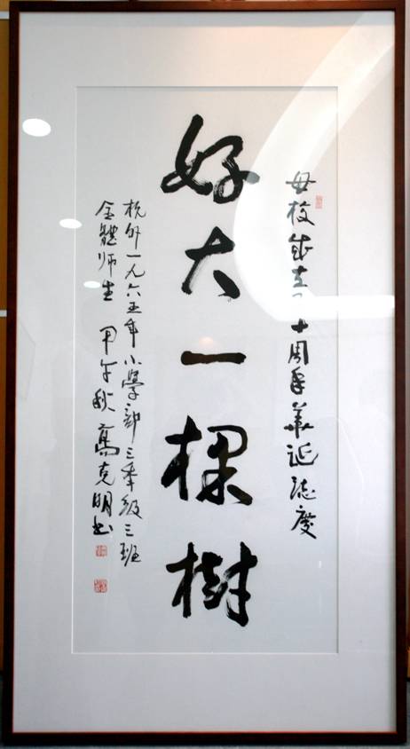 9月25日下午,我校1965级小学部三年级(3)班校友代表高克明先生回访母校,并向母校赠送了一幅亲笔书写的墨宝——“好大一棵树”,表达了昔日学子对母校的深切感恩与由衷祝福。一同前来的还有当年担任65级小三(3)班班主任的陆其英老师,以及该届校友戴筱建女士。