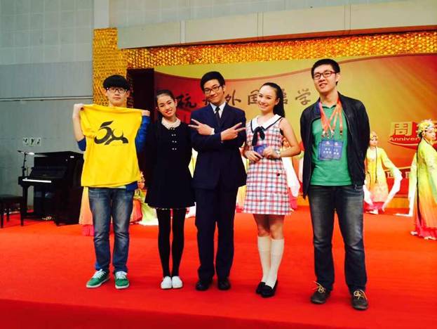 屠:我们主持团有五个人组成,分别是高二(1)班的斯宇西和钟傲然、高三(3)班的潘李昌、APU的金淑华,最后是我。