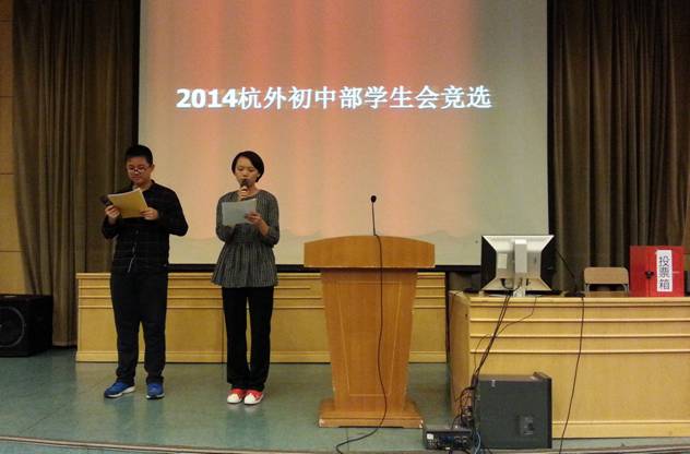 主持人是初三(1)班的郑海伦和初三(2)班的李敏杰,开始时便直入主题,介绍了学生会职务,然后便是竞选人的上场。