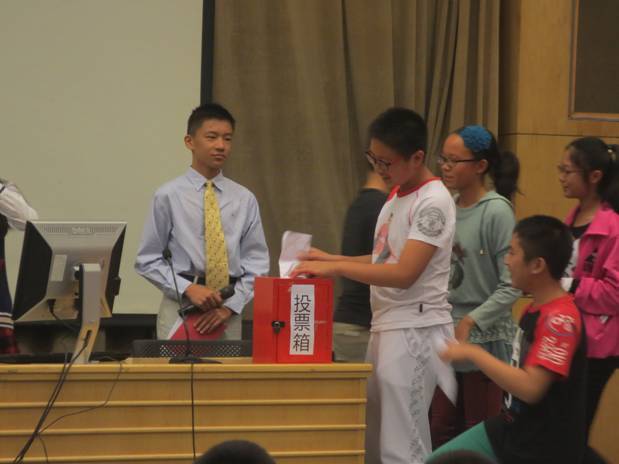 到了投票环节,同学们勾出自己认为最合适的8名大队干部,投进投票箱。一个郑重的时刻,将决定一个“带给杭外新局面”的大队部诞生!