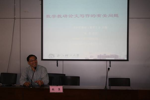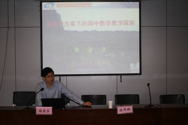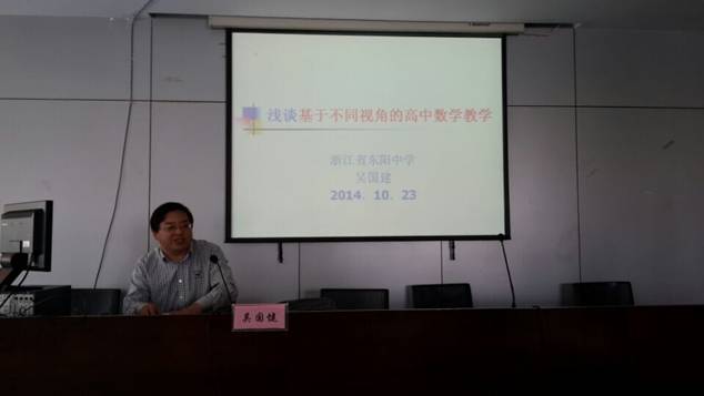 省教育厅教研室张金良作《新高考方案下高中数学教学探索》的讲座;浙江师范大学数理与信息工程学院教授张翼作《谈数学教师教学研究与论文写作》的讲座;东阳中学副校长、数学特级教师吴国建作《不同视角下的高中数学教学》的讲座。三位专家就老师们最关心的数学热点焦点问题层层解剖,深入浅出地为一线教师教研能力提升指明了方向。我校青年教师卢东波、潘俊、邹海连分别组织“MATLAB软件在数学教学中的应用”、“谈丘成桐中学数学奖指导与体会”、“谈图形计算器的应用与选修课开设体会”教研论坛,充分展示了我校数学组开拓创新的精神,也是我校特色课程的最好脚本。倪瑞祥老师的“国培归来谈教师专业能力提升”给培训学员很多启示。我校李惟峰老师、任刚强老师、兰冲老师及台州市高级中学在我校挂职培训的江君香老师分别开出研讨展示课。这些课程选题独到,内容新颖,富有启发性,引起全体学员的共鸣。