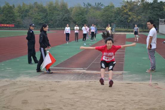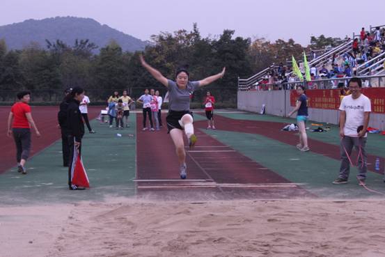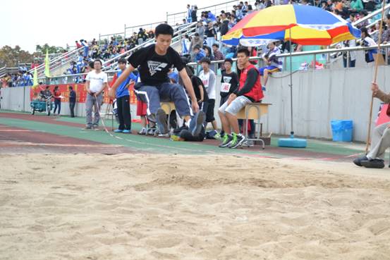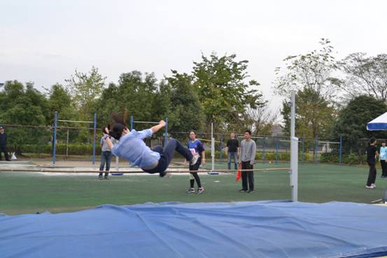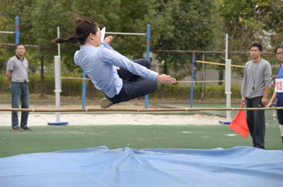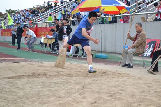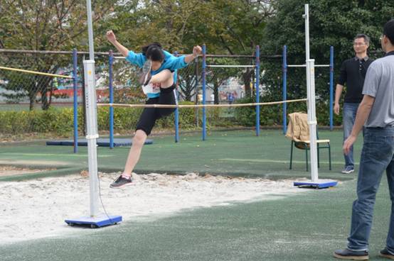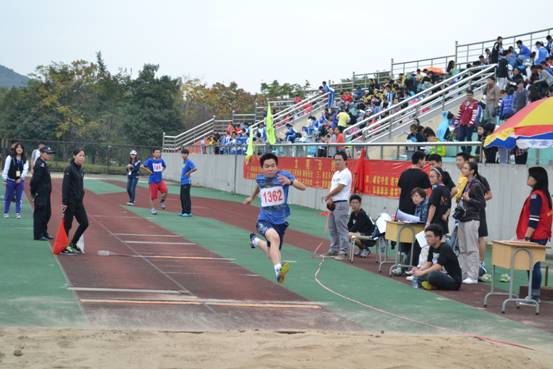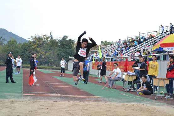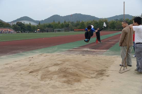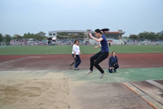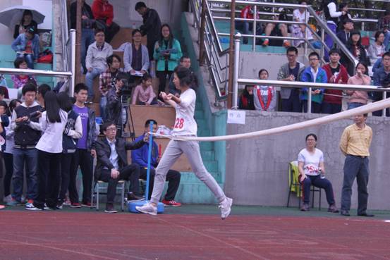 跳高场地上,初中的跳高比赛首先拉开帷幕。初三三班的钱诗涵同学以1米20的成绩夺得第一,相同的成绩也使初一4班的沈易同学夺得男子组冠军,可谓是初生牛犊不怕虎。跳远赛场上,被称为“跳高女王”的曾殊瑞同学在这里表现同样精彩,她以4米31的成绩轻松夺冠,获封“田赛女王”的响亮称号。高二五班的杨清岚同学在决赛与第二名成绩持平的情况下,凭着更胜一筹的初赛成绩惊险卫冕。三级跳远赛场在第一天决出了高一男子组的冠军。来自高一五班的张徐磊同学虽然是第一次参加该类比赛,但仍是以11米15的不俗成绩登上第一宝座。高二五班的张奕辉同学则以11米64的佳绩再次卫冕。