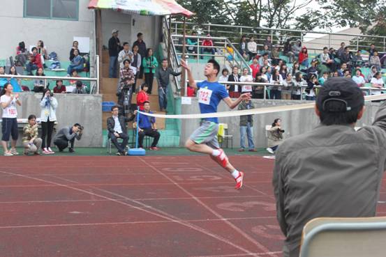 运动会第一天,田赛的第一项为高一男子组三级跳远,而高一(5)班的张徐磊同学首战告捷,获得冠军。下面,就让我们来近距离了解一下这位优秀的运动员。