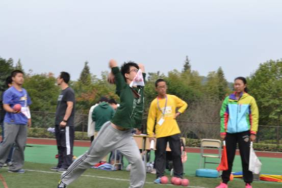 田赛的赛场则是同学们关注的另一个焦点。在上午首先进行的高三男子实心球比赛中,高三九班的徐子傲同学以16米39的成绩打破校纪录,为本届运动会的田赛吹响第一声胜利号角。高二四班的申屠钦同学以超过1米的优势强势卫冕男子实心球冠军,博得阵阵惊叹。
