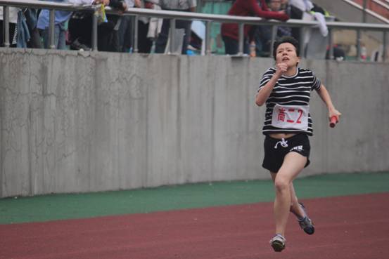 A:发令枪响的时候其实什么都没想,只是一个念头,就是想要跑好。因为首先是一次新的尝试,其次是为了班级,因为之前的成绩并不是太理想,至于途中所想的人或物,大致是陶天成,他是一起战斗的小伙伴。还有同学及场上的老师,他们都有给我鼓励。