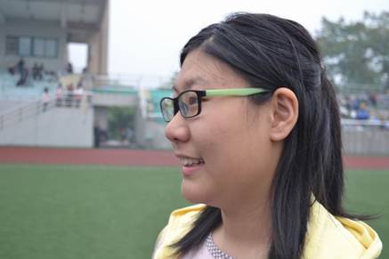 陈:对于我的成绩,我觉得第一是非常正常的。但是我没有料到二班的梁钰清同学那么厉害。我觉得明年运动会她有可能取得更好的成绩。