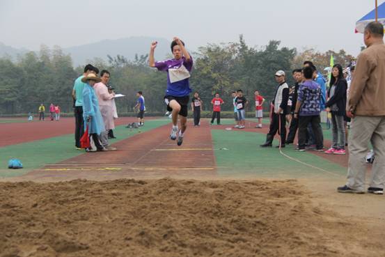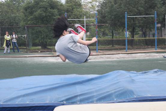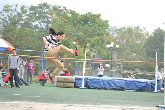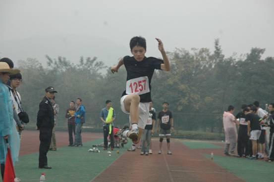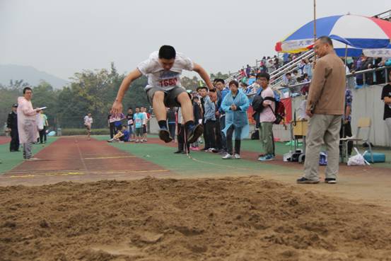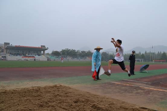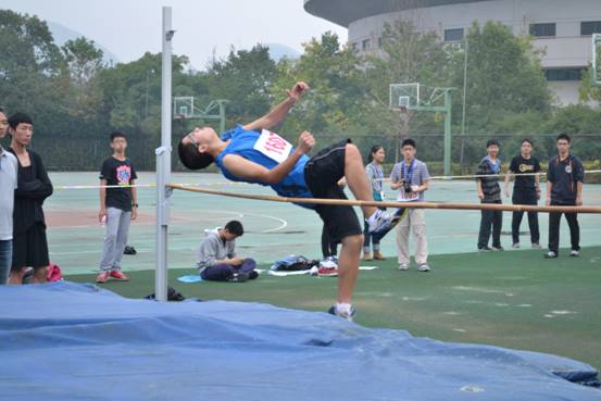 跳高赛场今日也频频涌现明星选手。高二五班的胡智超同学再度摘得桂冠,而昨日方才加封三级跳远冠军的张徐磊同学也凭着1.50米的成绩再次摘得高一男子跳高冠军。提前于今日举行的高三男子跳高依旧如往届一样星光璀璨,王家浩同学以1米74的成绩完成了三年三夺冠军的伟绩。跳远赛场上,初三四班的占俊杰同学凭着5米34的成绩一举称王,田赛传奇虞凯杨同学也在下午的高三跳远比赛中再度卫冕。